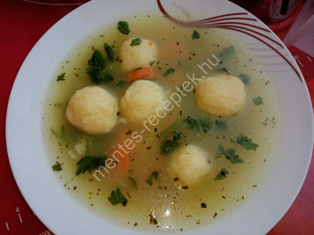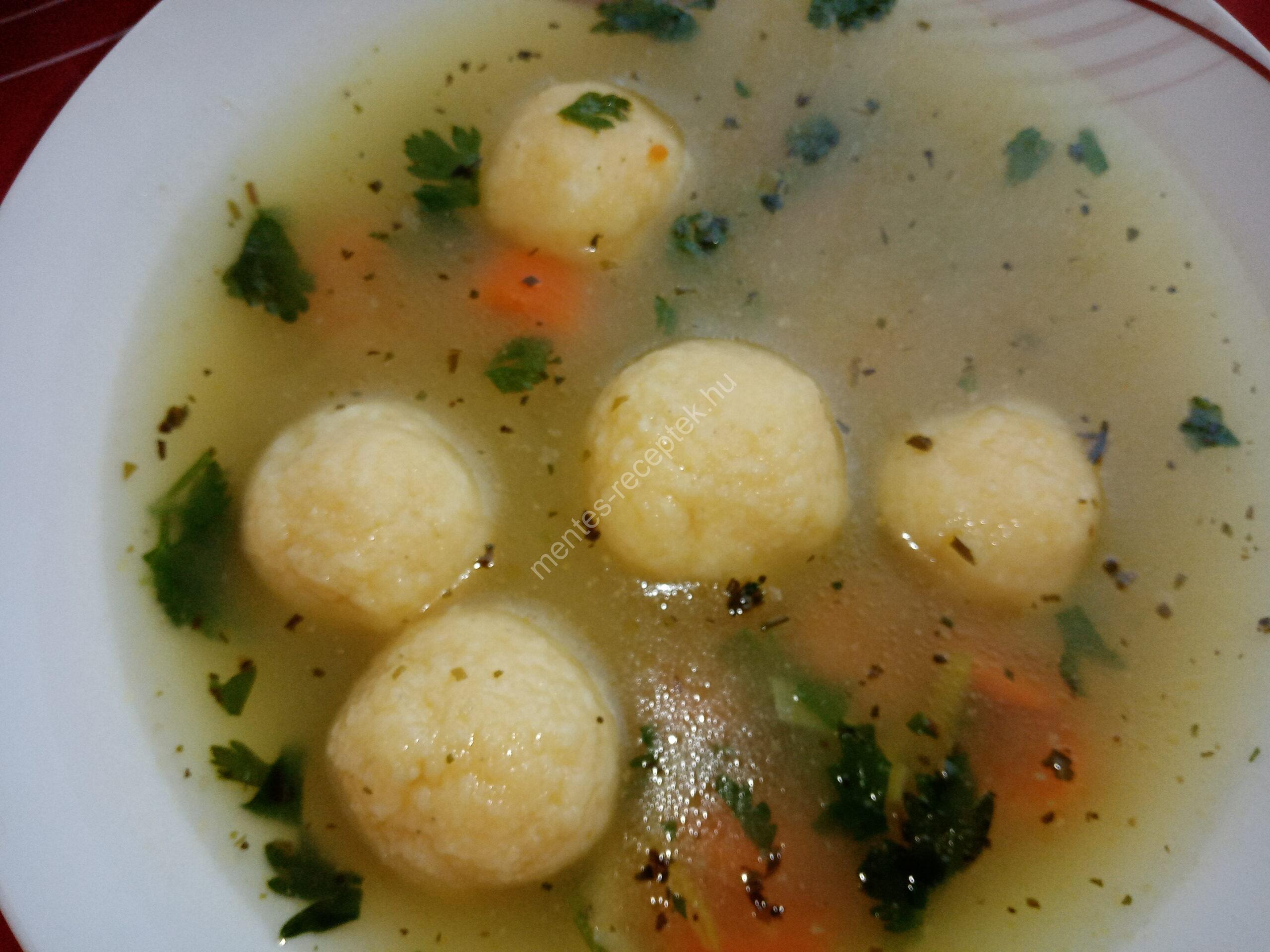 Ha megfőtt a sárgarépa, a masszából kis gombócokat formálunk és a forrásban lévő levesbe rakjuk. Újraforrás után közepes lángon folytatjuk, amikor feljönnek a tetejére még pár percig főzzük és kész. Forrón tálaljuk.